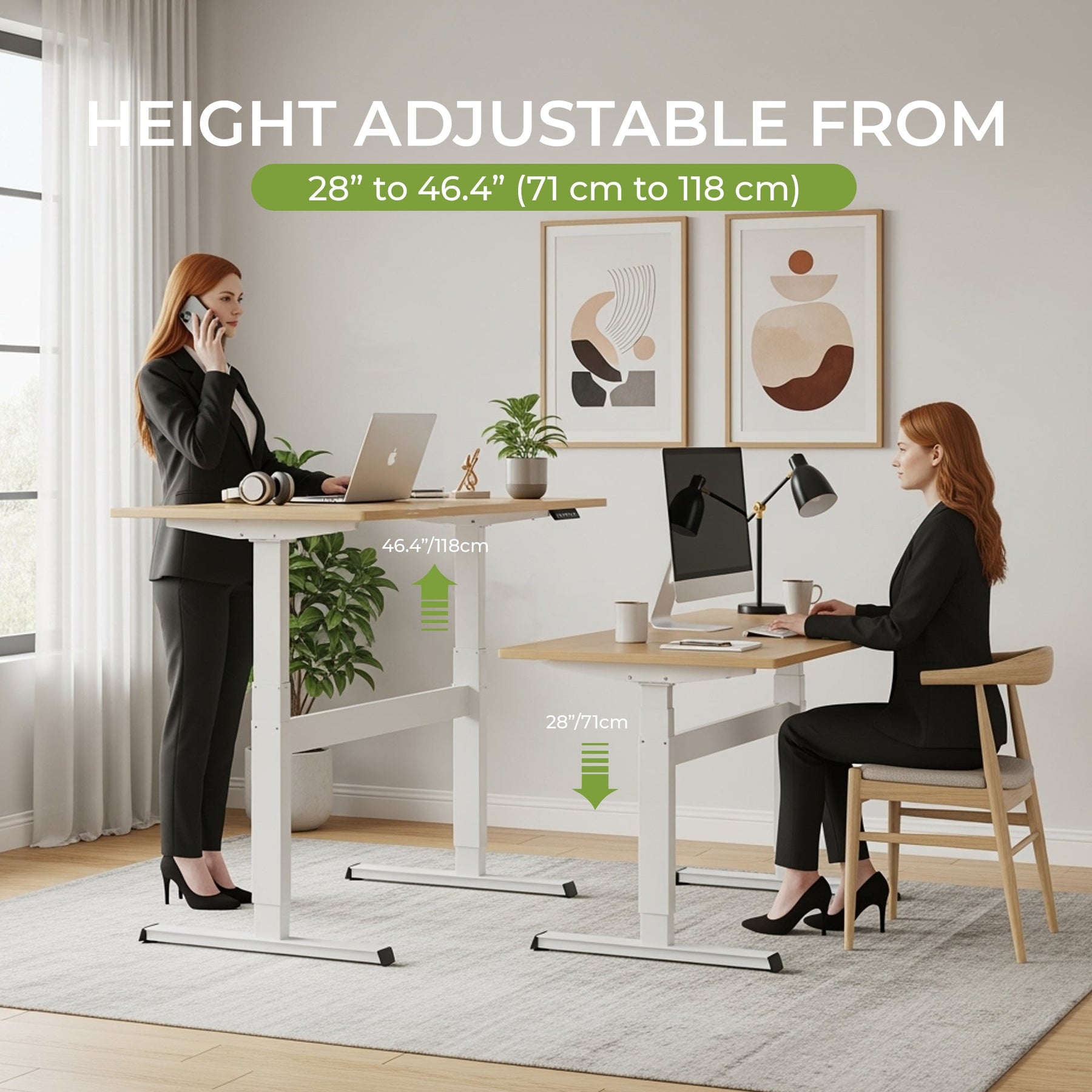 • Electrically Adjustable: Effortlessly switch between sitting and standing positions with the smooth electric lift system.
