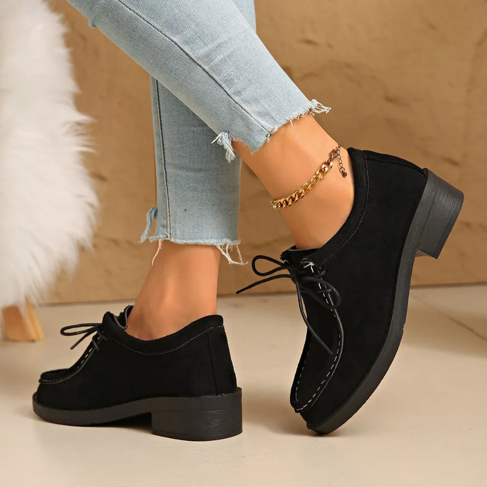 These loafers boast a soft, suede-like upper complemented by classic stitched moc-toe detailing, creating a refined yet approachable aesthetic. The lace-up design ensures a comfortably snug and adjustable fit. Perfectly pairing with jeans, formal trousers, or smart casual office attire, these shoes are an ideal addition to your everyday wardrobe.
