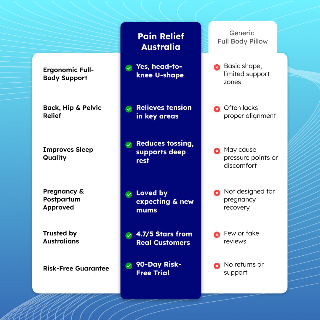 U-shaped full body pillow for pain relief, shown in grey, offers comfort for side sleepers and pregnancy support in Australia
